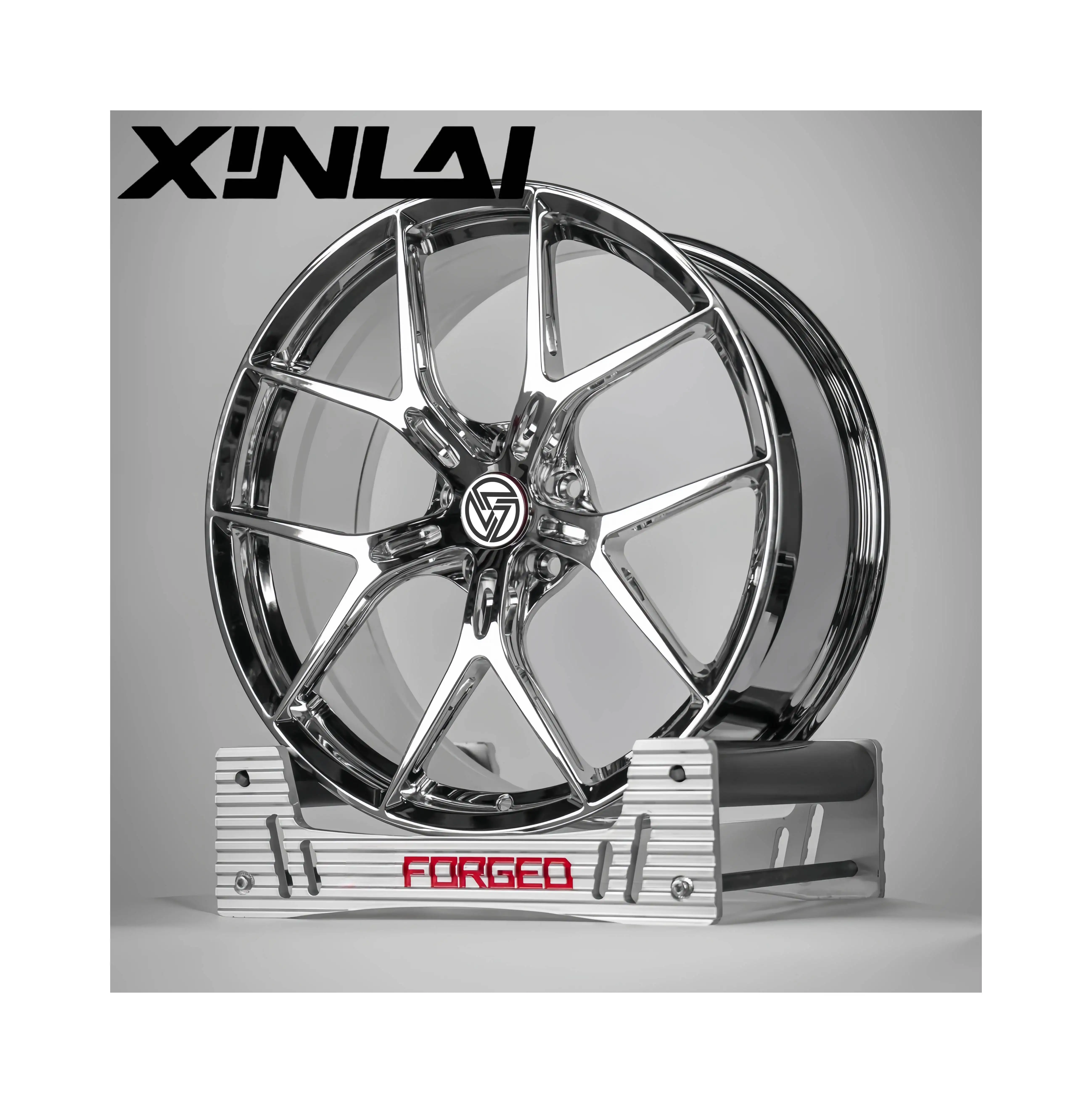XINLAI Custom Deep Concave Forged 5 Spokes Aluminum Alloy Polish Chrome Wheels Rim Silver 5x120 5*112 5*114.3